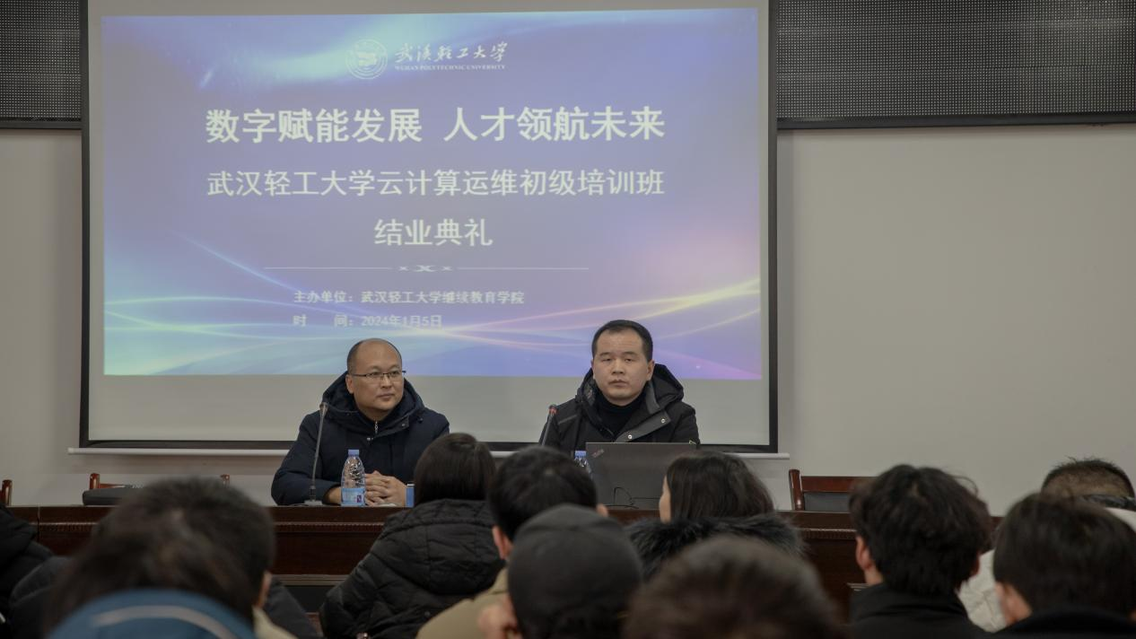 2014年1月5日,武漢輕工大學聯合武漢厚溥數字科技有限公司開展的為期16天的“云計算運維初級培訓班結課儀式”順利舉行。武漢輕工大學繼續教育學院副院長喻欣、武漢厚溥數字科技有限公司常務總裁翁高飛、社培總監余亞玲、教研總監吳靜、教師代表以及全體學員出席了結業典禮儀式。