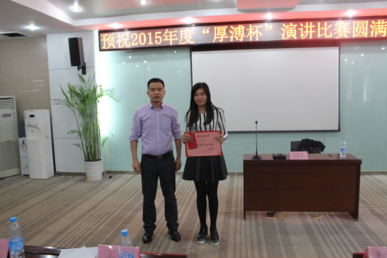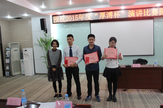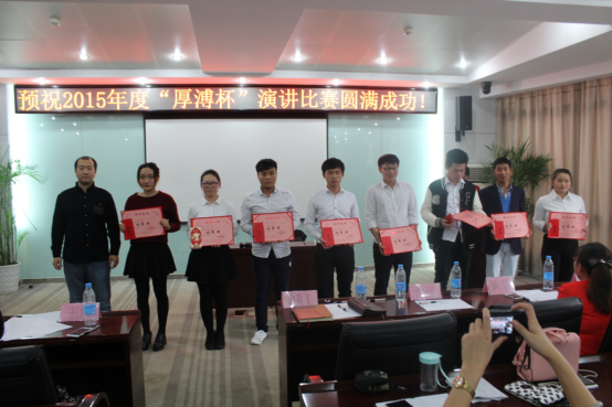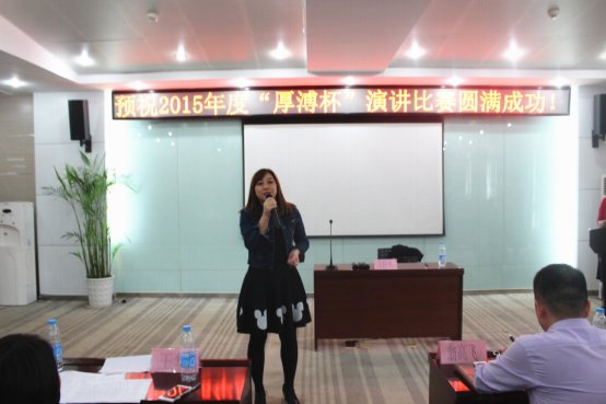 2015“厚溥杯”演講比賽由武漢厚溥教育科技有限公司技術中心主辦,技術中心于2015年10月初開始組織策劃,參賽學校及對象由荊州職業(yè)技術學院、湖北國土資源職業(yè)學院、湖北科技職業(yè)學院、武漢工程職業(yè)技術學院、黃岡職業(yè)技術學院、武漢外語外事職業(yè)學院、湖北三峽職業(yè)技術學院、武漢軟件工程職業(yè)學院、河南水利與環(huán)境職業(yè)學院、河南信息統(tǒng)計學院10所院校的在校學生組成,各校區(qū)于11月2號之前進行內部選拔,最終每個校區(qū)確定3名選手參加11月6號在光谷總部組織的最后的總決賽。