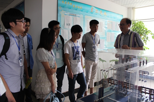 木森電氣項目組的學生在公司生產車間了解產品情況