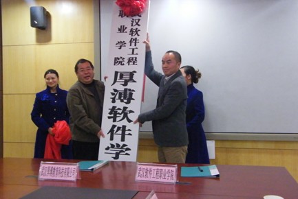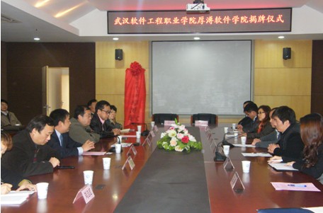 2013年12月2日下午15:00武漢厚溥教育科技有限公司與武漢軟件工程職業(yè)學(xué)院(以下簡稱武軟)在武軟實(shí)訓(xùn)中心二樓會(huì)議室舉行了校企合作共建院系厚溥軟件學(xué)院揭牌儀式。