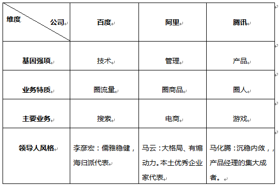 第一梯隊(duì)(市值千億美金以上):黃金三巨頭:BAT(百度、阿里、騰訊)